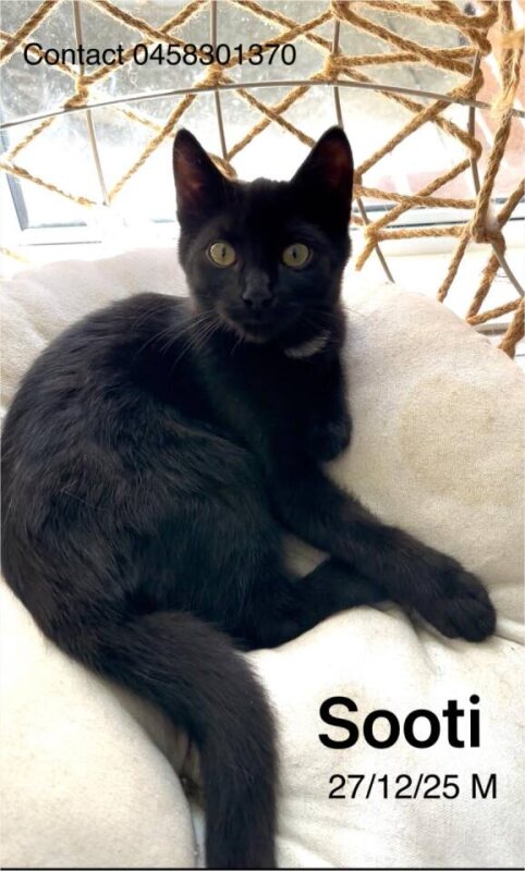 Sooty will be desexed, microchipped, vaccinated and lifetime registered for his new family