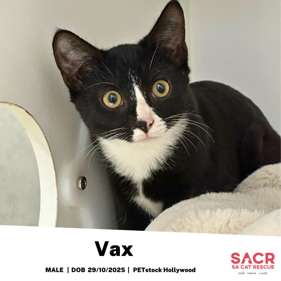 Vax's adoption fee is $195 which includes desexing, microchipping, parasite prevention, and initial F3 vaccination.