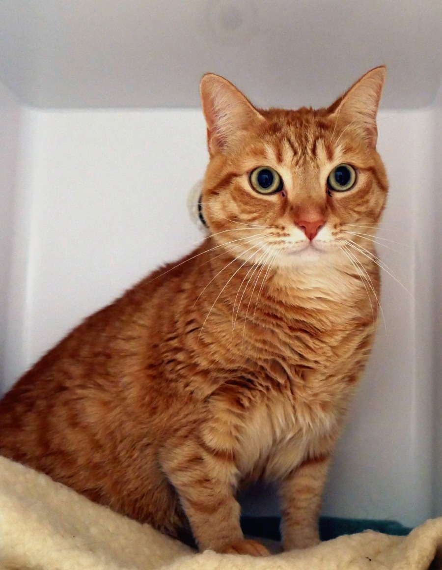 This handsome ginger gentleman is looking for a calm, understanding home where he can truly come into his own. Bert is quite shy and timid when meeting new people or exploring new environments, so he’ll need a little time, patience, and personal space to settle in and find his feet.