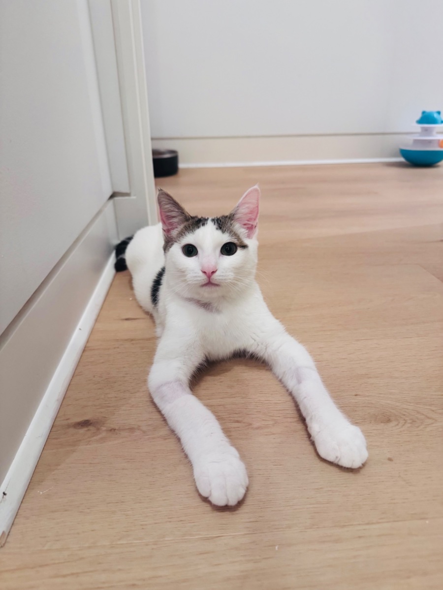 This adorable boy is full of joy, and we are so grateful to see him happy and healthy. Crouton is a cuddle enthusiast who purrs the moment you talk to him. His favourite spot? The cozy basket on his cat tree, where he naps in total relaxation. 🧺💤