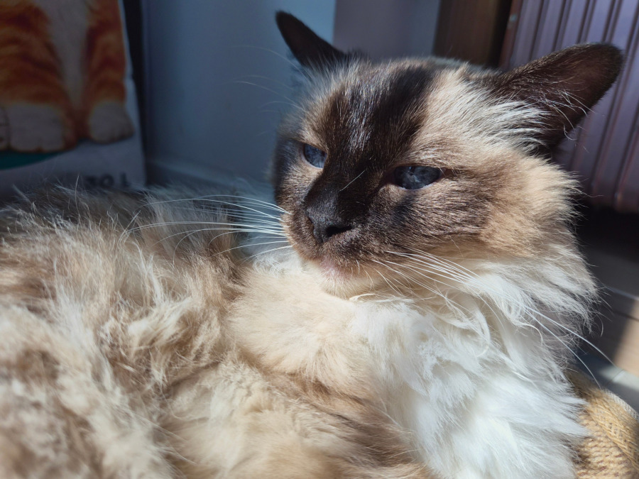 Professional Sunbather: Sophie’s ideal day involves finding a soft bed in a patch of sunlight and staying there until the sun goes down. She is a master of relaxation. 🌅💤