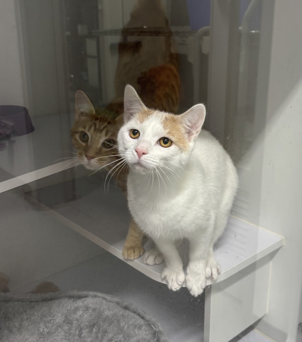 Despite their different personalities, these two absolutely adore each other. You'll often find them snuggled up together, grooming one another, or napping in a cozy cuddle pile. Their bond is truly heart-melting.