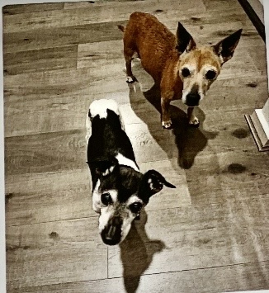 Chester male desexed mini foxy 15 and Mia female desexed jack Russell 14 came to us from a shelter surrendered when owner went into care themselves.