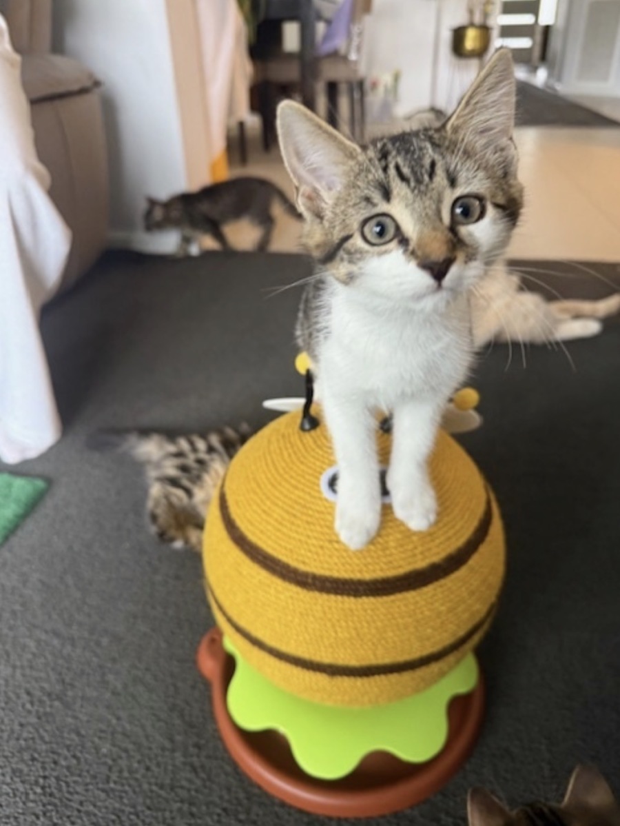 Say hello to Aspen, a cheeky, sweet, and utterly charming little kitten with lots of personality and energy! She’s full of curiosity and always ready for her next tiny adventure around the house.
