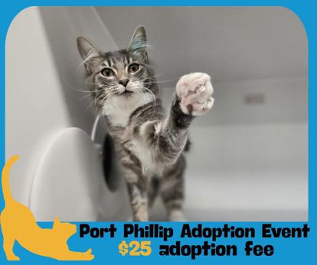 This gorgeous kitty will be available for adoption at our special Adoption Event held in conjunction with Port Phillip City Council.