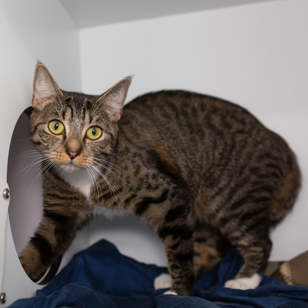 Promise is a beautiful one-year-old tabby girl with a heart as big as her name suggests. True to her name, she promises to fill your days with constant love, affection, and companionship. Sweet, gentle, and endlessly devoted, Promise thrives on being close to her people-whether she's curling up beside you or following you from room to room. She has a calm, loving nature and would make a perfect companion for someone seeking a loyal best friend. If you're ready to open your heart and home, Promise is ready to keep hers wrapped around yours forever, every single day.