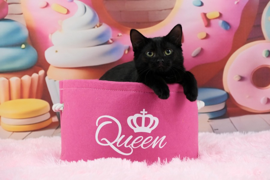 Minnow is the sweetest little black shadow you could ever ask for. Wherever you go, she will be close by, quietly keeping you company and watching the world with her bright, curious eyes.