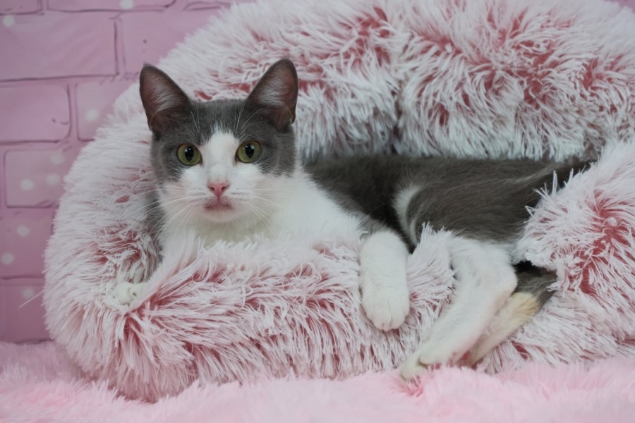 Lola is a sweet little rescue girl with a soft dove-grey coat, perfectly offset by touches of white that make her look as gentle as she truly is. This lovely cat has a heart full of affection and is ready to share it with someone special.
