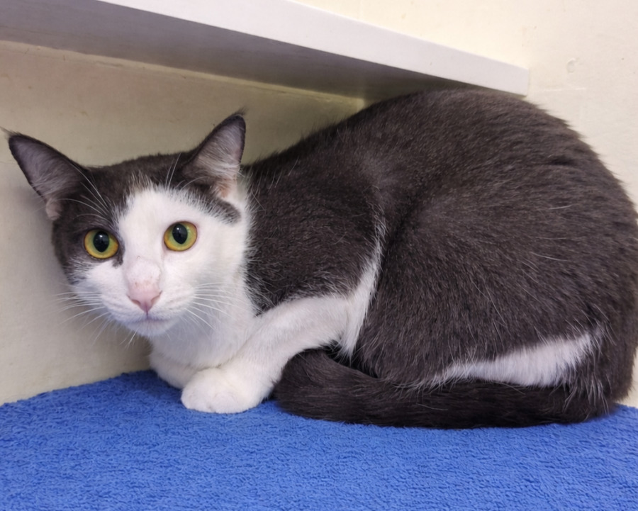 Meet Minmi, a lovely blue and white girl with a gentle soul and a story of quiet progress. Alongside her sister Rappi, Minmi began life as a feral kitten, so she is still learning that the world (and people) can be kind and safe.