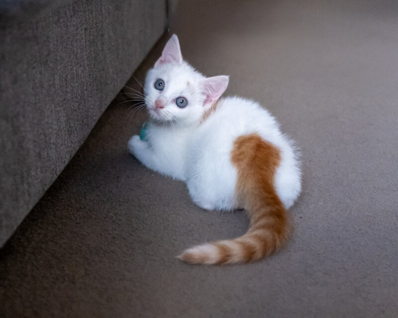 His coat is just as unforgettable as his personality. Holden is snowy white, paired with a striking ginger tail that stands out like a rare, limited edition finish, the kind that turns heads and leaves a lasting impression wherever it goes.