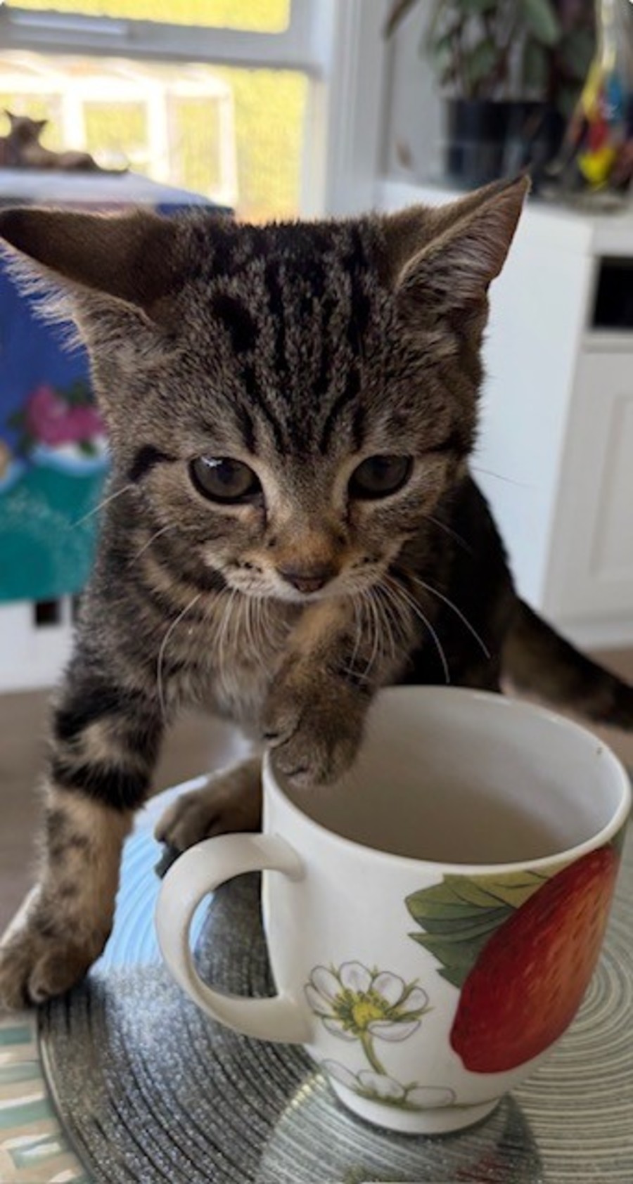 ET is the kind of kitten who lights up a room the moment he bounces into it. A tiny comet of energy, he turns every corner into an adventure and every object into a toy. His enthusiasm is infectious, you can’t help but smile when he’s around. And when he finally slows down, this spirited boy transforms into a purr machine and cuddle monkey, happiest curled up in your arms for a well‑earned nap.