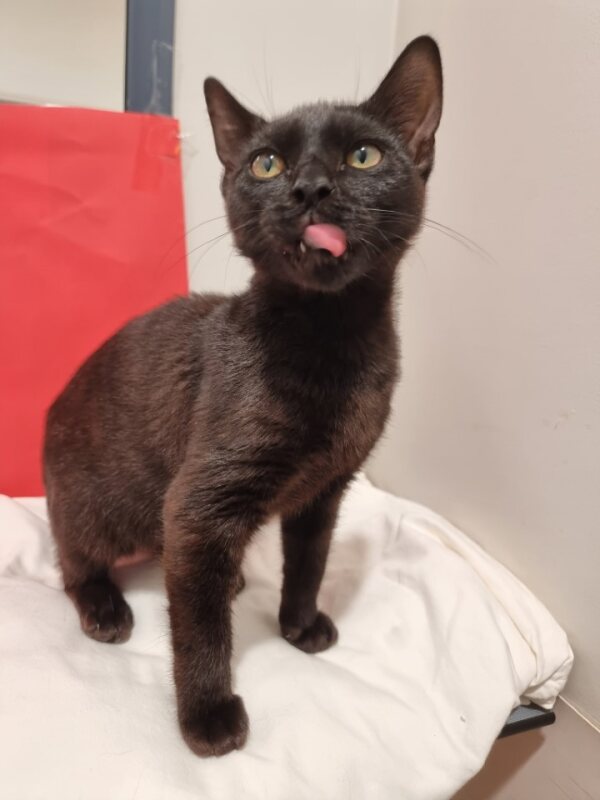 Hi, I'm Sage, a female Domestic Short Hair. I'm 6 months old. I'm a lively, curious girl who loves to chase toys, explore new spaces, and nap in sunny corners. My energy is high, especially with other kittens around, so I keep a busy, playful home hopping. I'm best with children aged 6 and up, who can match my pace and give me gentle affection. I thrive in a quiet, calm household where I can wind down after play and settle into a cozy routine. I adore feather wands, puzzles, and comfy window perches. I'm affectionate and curious, and I’ll reward your patience with plenty of purrs and wiggles of joy. I'm hoping for a peaceful home that balances fun and quiet moments. If you want a spirited, loving companion who grows with you, I might be the one for you. Please consider meeting me and starting an adoption journey!
