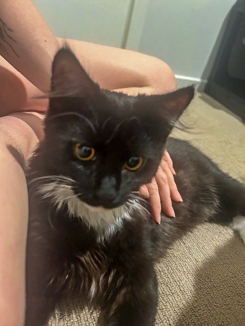 Billy shows affection loudly and physically. He'll purr like a motor, rub himself against you, and settle in for a cuddle on his own terms. During play he has a sweet habit of nibbling people's nails — gentle, harmless and very Billy.