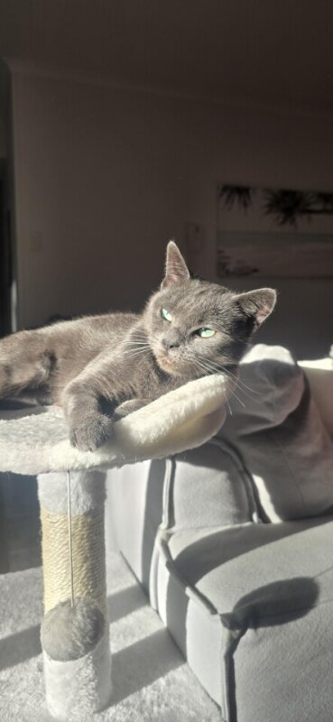 Hi, I’m Diana. I’m a female Domestic Short Hair cat, and I’m 2 years and 1 month old. I’m an easygoing companion with an average energy level—happy to nap in a sunbeam, and content with a gentle play session or a soft toy when I’m feeling a spark. I’m affectionate and curious, and I adapt well to a calm home. I’m best with gentle children, and I have no known child-related issues. I’m litter trained, clean, and reliable. I love a cozy bed, a window to watch birds, and quiet companionship. If you’re looking for a loyal, low-key feline friend who will be by your side for years to come, I’d love to meet you. I’m ready for the right family to welcome me home.