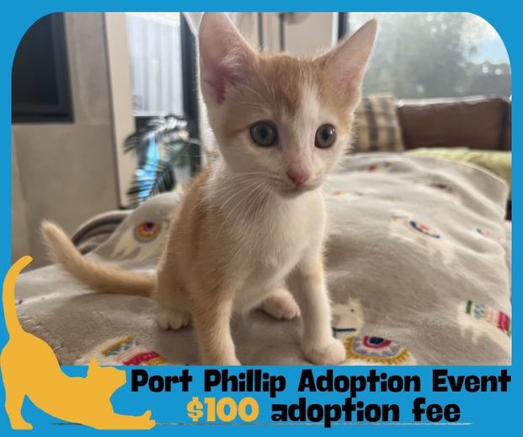 This amazing kitten will be available for adoption at our special Adoption Event held in conjunction with Port Phillip City Council.