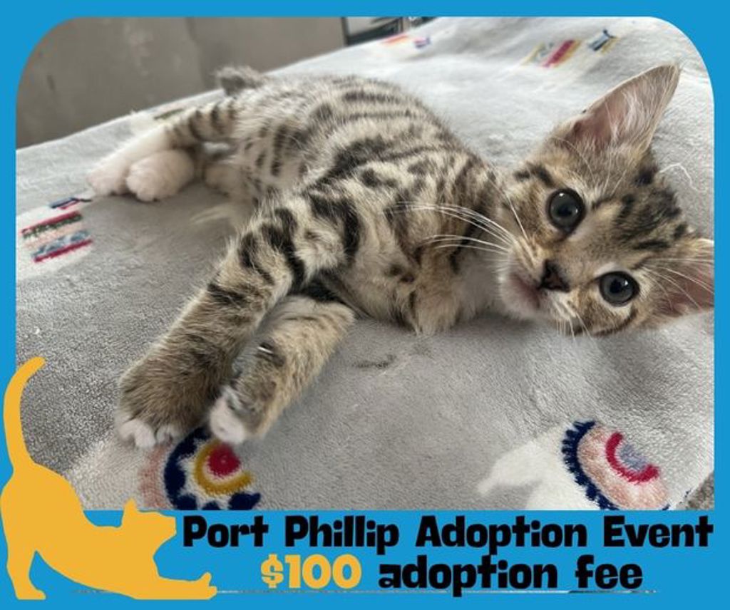 This amazing kitten will be available for adoption at our special Adoption Event held in conjunction with Port Phillip City Council.