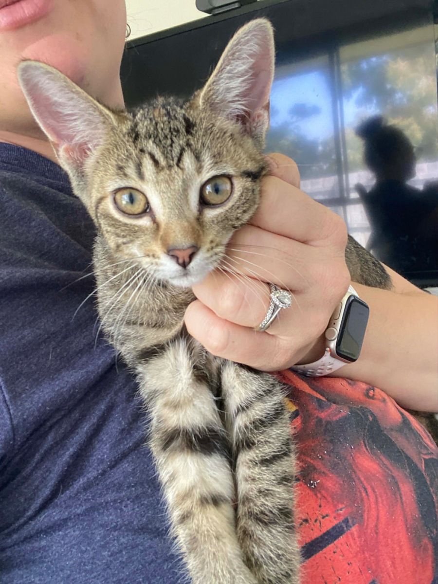 She is a lovely balance of playful and cuddly. She enjoys playing with her sister Mabel and the two can often be found chasing each other before curling up together to sleep. While they are not bonded, they share a beautiful friendship.