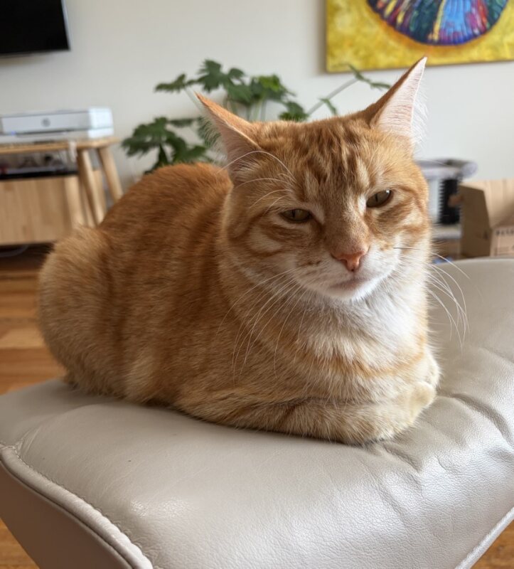 Rusty loves affection, and will sit on laps, beds and couches to be close to people.