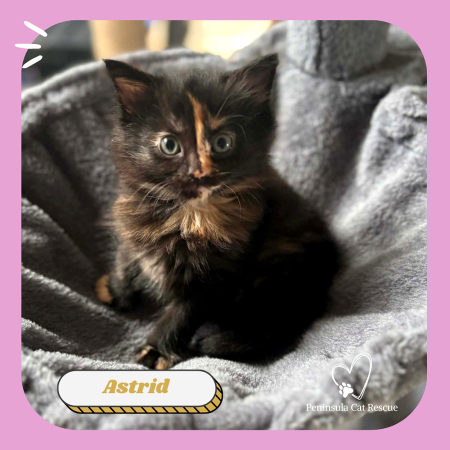 Sweet Astrid is a quiet little adventurer who always seems to be nearby. This energetic delight is usually far too busy investigating new ways to have fun to spend long periods snuggling, but she’ll happily reward your affection by leaning into your pats and offering a soft little purr before dashing off on her next mission.