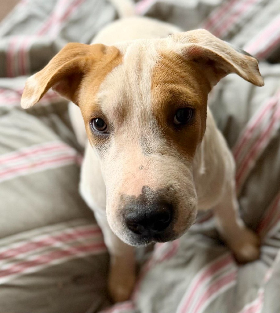 She shares her space well, with no signs of food guarding or aggression, and has shown herself to be a gentle, easygoing companion who is just figuring out the world at her own pace.