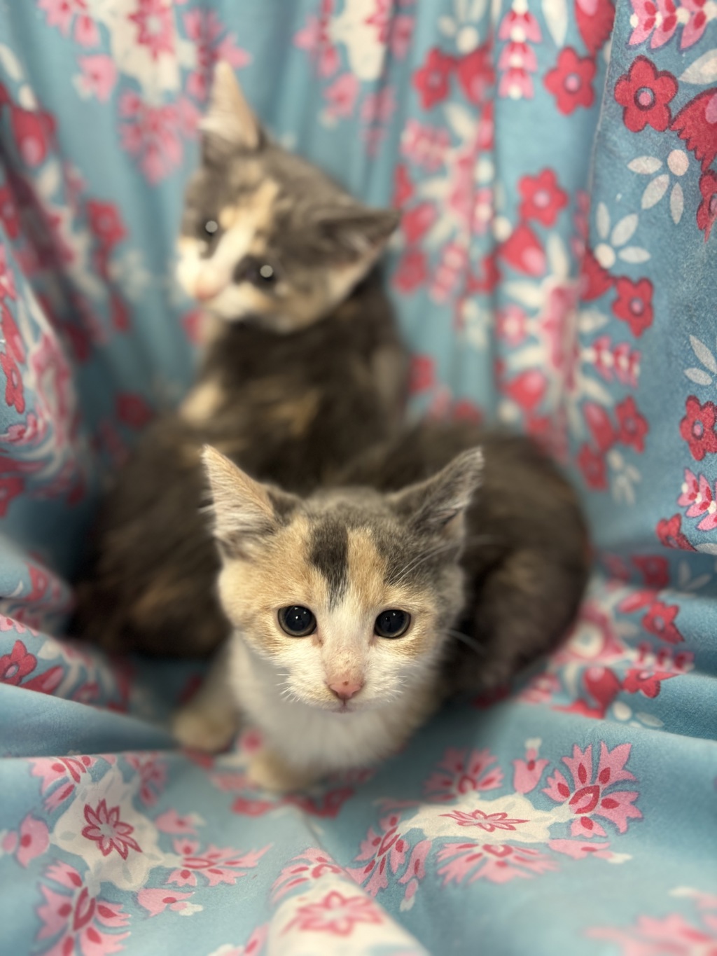 Say hello to Mary and Poppins - two 10-week-old muted tortoiseshell sisters bursting with personality, charm, and playful energy.