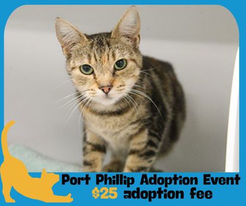 This gorgeous kitty will be available for adoption at our special Adoption Event held in conjunction with Port Phillip City Council.