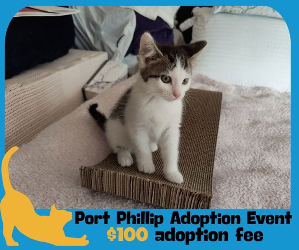 This amazing kitten will be available for adoption at our special Adoption Event held in conjunction with Port Phillip City Council.