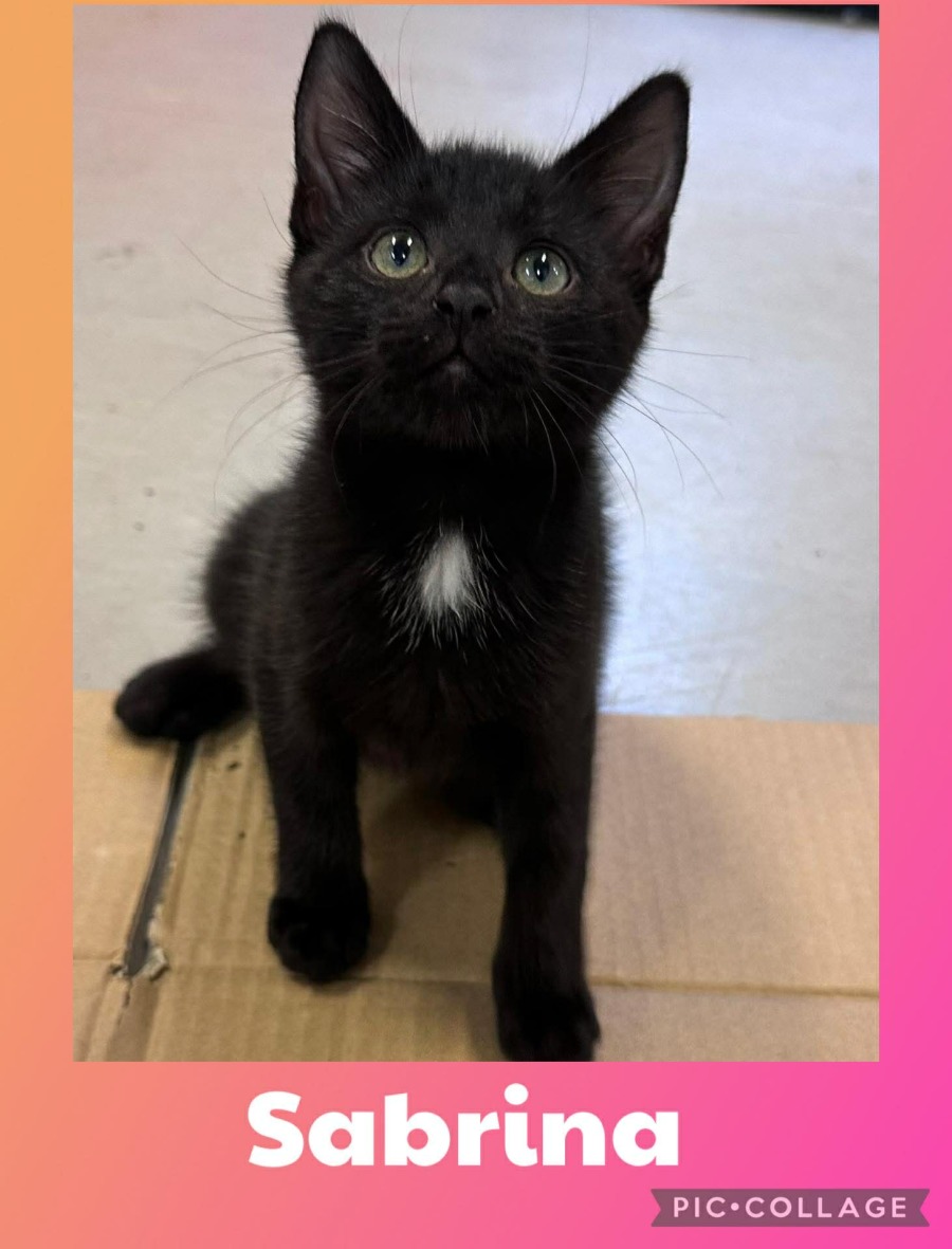 Meet Sabrina, a delightful young kitten brimming with playful curiosity and charm. With her wide-eyed innocence and energetic spirit, Sabrina is sure to capture your heart at first glance. Despite her young age, she's full of fun and ready to share her affection with a new family.