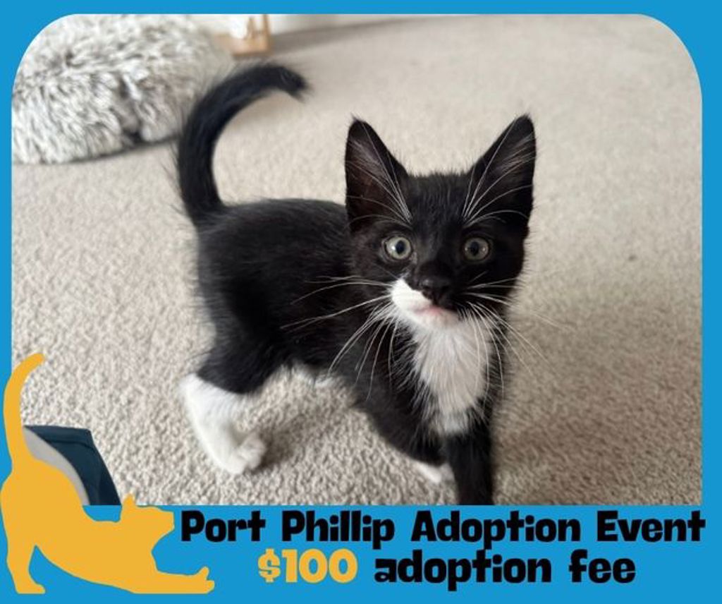 This amazing kitten will be available for adoption at our special Adoption Event held in conjunction with Port Phillip City Council.