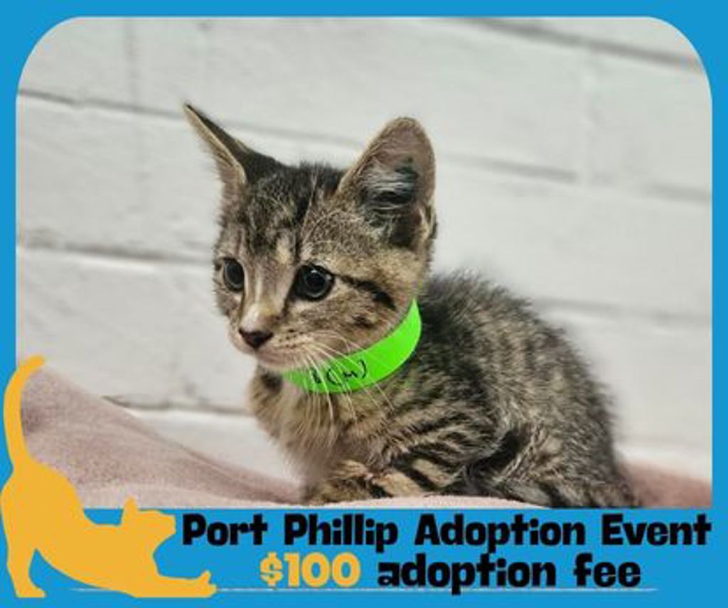 This amazing kitten will be available for adoption at our special Adoption Event held in conjunction with Port Phillip City Council.