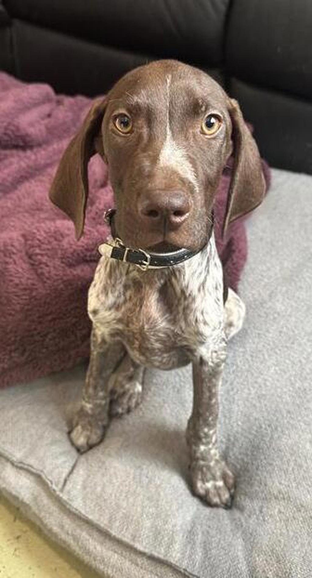 Crumpet is a sweet, cautious puppy who loves people and cuddles once some trust has been built. He happily seeks out attention, but would benefit from building some confidence with handling using treats! He's very food motivated and already showing he's keen to learn, gently taking treats and happily learning how to sit.