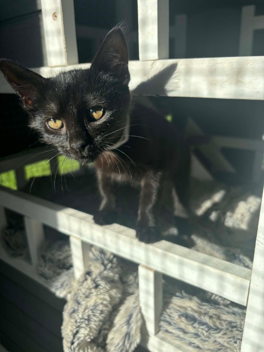 Latrice is a playful little black kitten bursting with energy and personality! This cheeky girl lives life in the fast lane, zooming around the house at top speed, chasing toys, shadows, and anything else that moves.