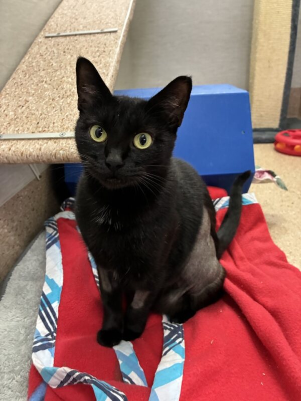 Honey is a beautiful black cat with a gentle soul and a heart that just needs a little time to shine. She can be timid and shy when meeting new people, therefore a slow, gentle approach is the key to earning her trust—but once you do, it’s incredibly rewarding.
