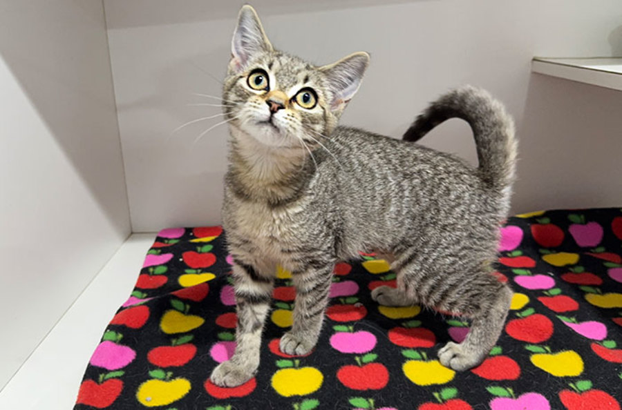 Uma is a soft and sweet kitten who might seem a little shy at first, but don’t be fooled, she’s just saving her energy for play time! Once she’s ready, she’ll be darting after toys and exploring her surroundings with curiosity. Uma purrs when picked up and enjoys being around people. She’s gentle, social, and always has a friendly, happy vibe.