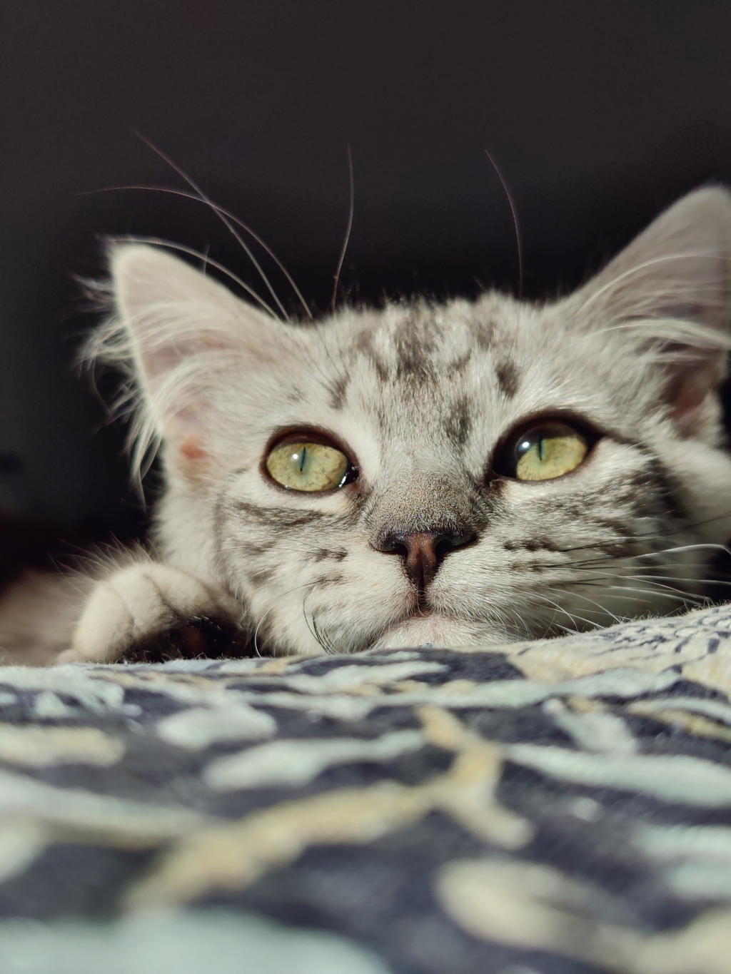As a kitten, I'm still very curious and playful. My favourite toy is a butterfly on a wand, but I love all toys and games so long as I get to chase, pounce, and climb. Once the games are done my favourite place to curl up and have a nap is a cosy cat bed where I can keep an eye on my people and cat friends.