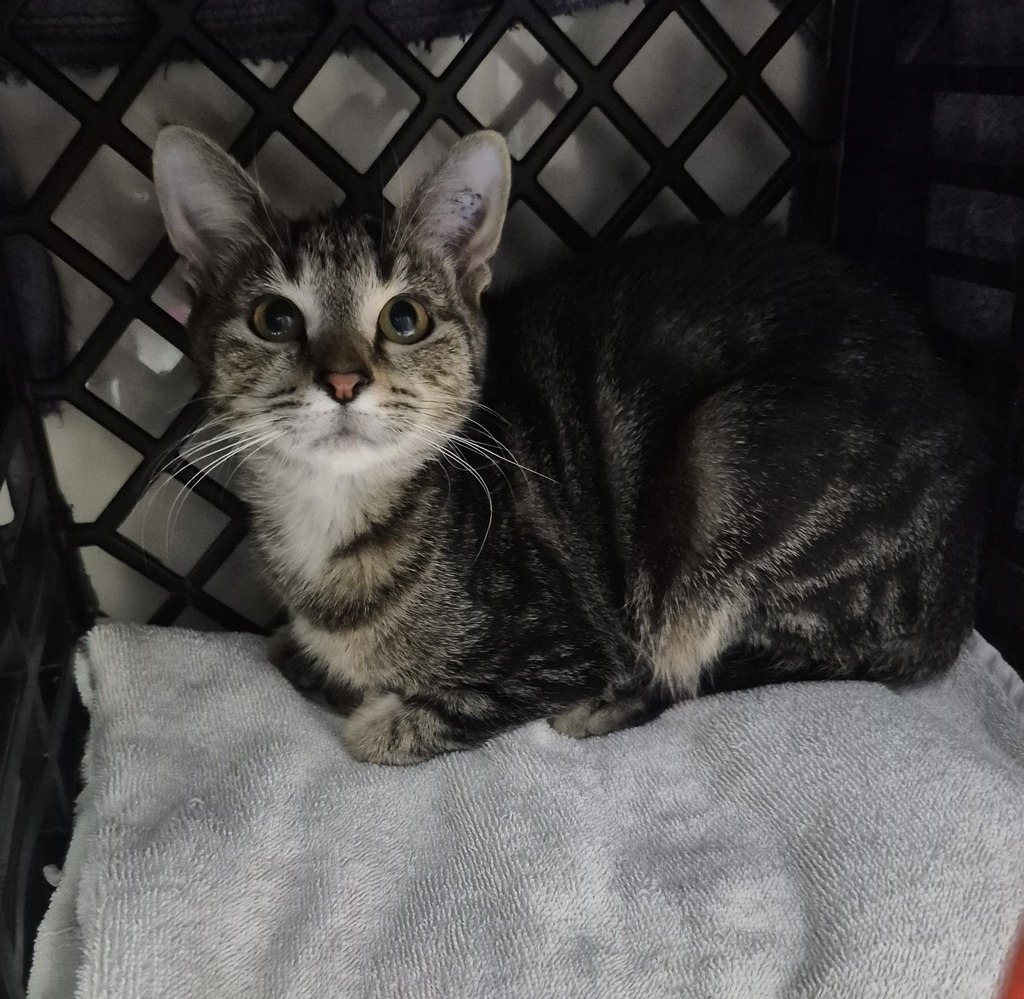 Petrie is a beautiful little kitten with a gentle soul and a playful spark. She came into care as a stray and needed some time to adjust to her new environment. At first, she was quite shy and unsure, but with patience, kindness, and a safe place to settle, Petrie has truly come out of her shell.