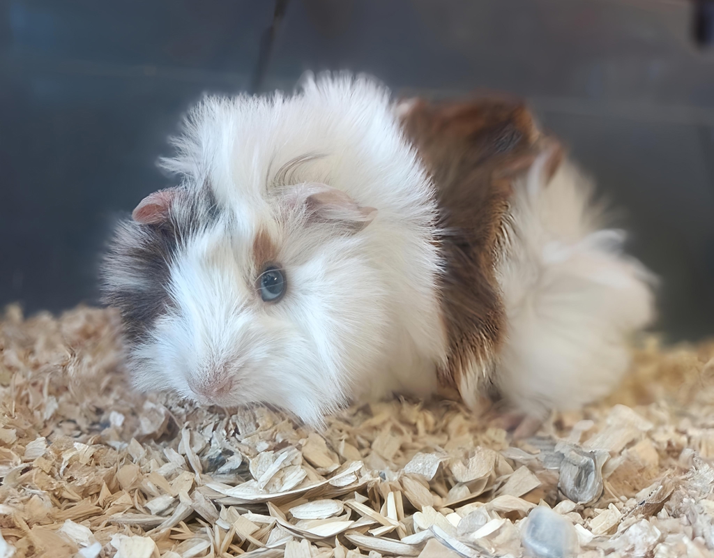 Finch is a gorgeous female Abyssinian baby guinea pig with a stunning ruffled coat that gives her a wonderfully unique, tousled look. Super cute and full of charm, she's been handled since birth and is already comfortable with gentle human interaction. Finch has a bright, curious personality and loves being part of the action, happily soaking up attention and affection.