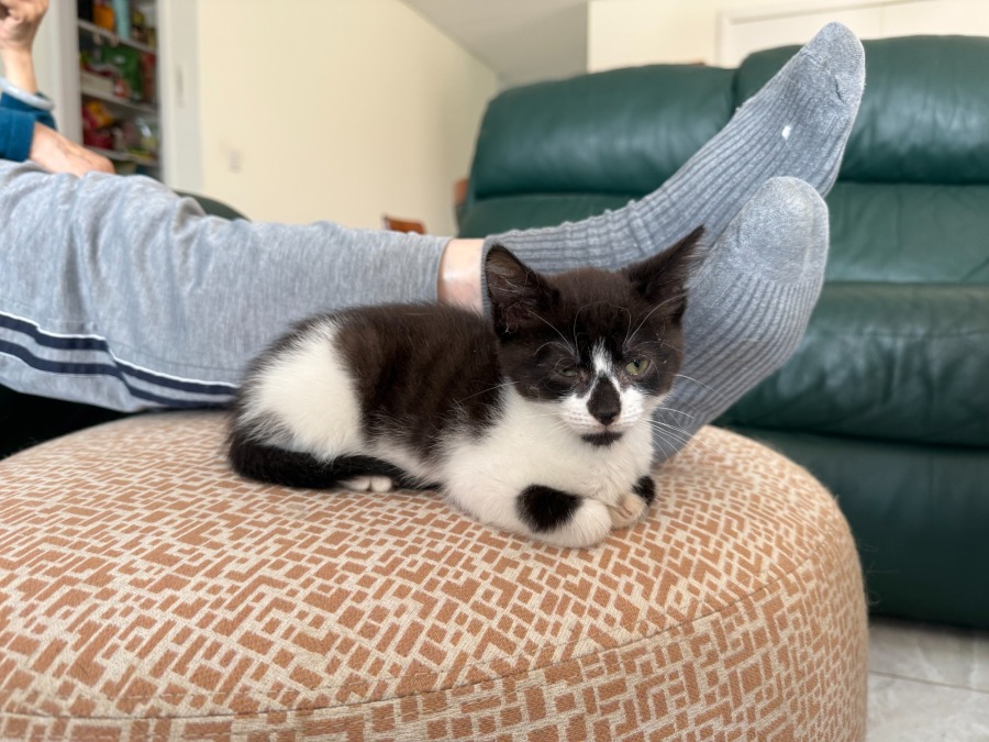 Lamington was found by a concerned community member in the Cumberland LGA, he and his siblings were trapped between a retaining wall and a colour bond fence. They were 2 weeks old, lost, scared and hungry. Mum was nowhere to be seen. KKR received a call for help and rushed there and had to devise a plan to safely remove them from where they were stuck! Quick thinking and some helpful tradies removed the colour bond panels and kindly put them back together afterwards. Genuine heroes that meant the kittens survived! It was touch and go for the kittens, dehydrated from not having been fed and out in the searing heat. With love, care and dedication by an experienced neonatal foster carer they thrived and became healthy happy little kitten.