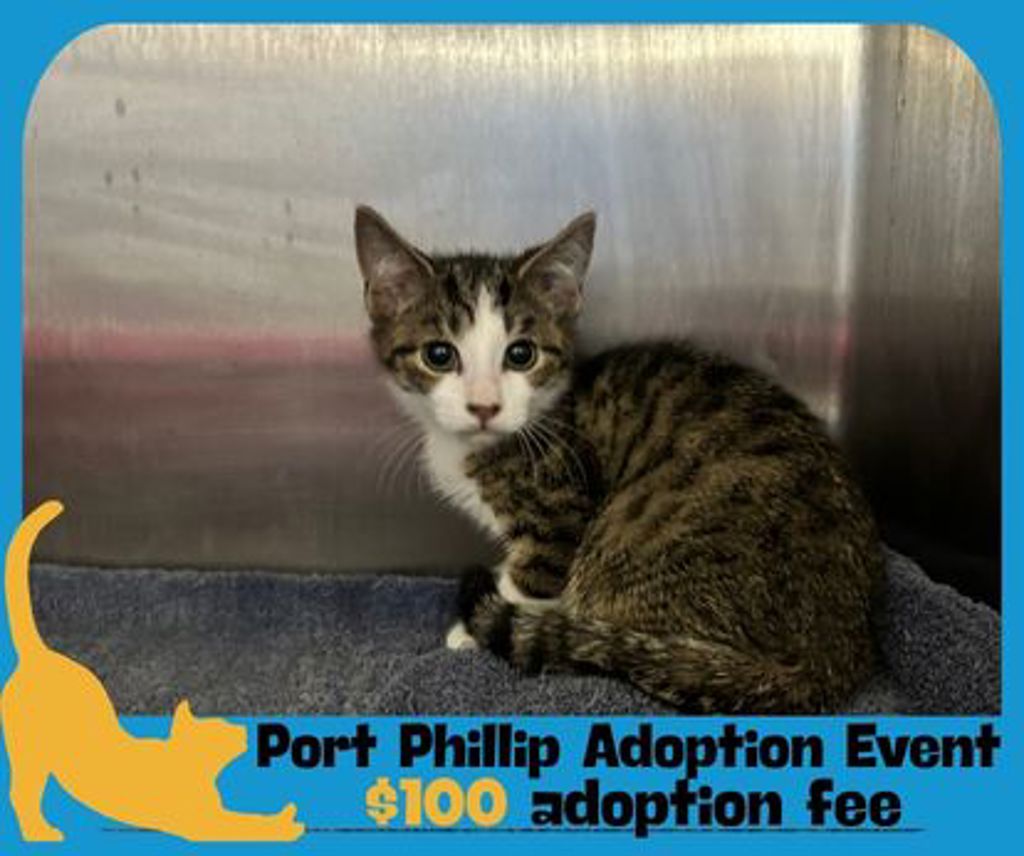 This amazing kitten will be available for adoption at our special Adoption Event held in conjunction with Port Phillip City Council.