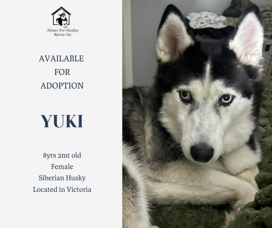 For more details about any of our dogs and our adoption process please send an email inquiry to contact@homesforhuskies.org.au