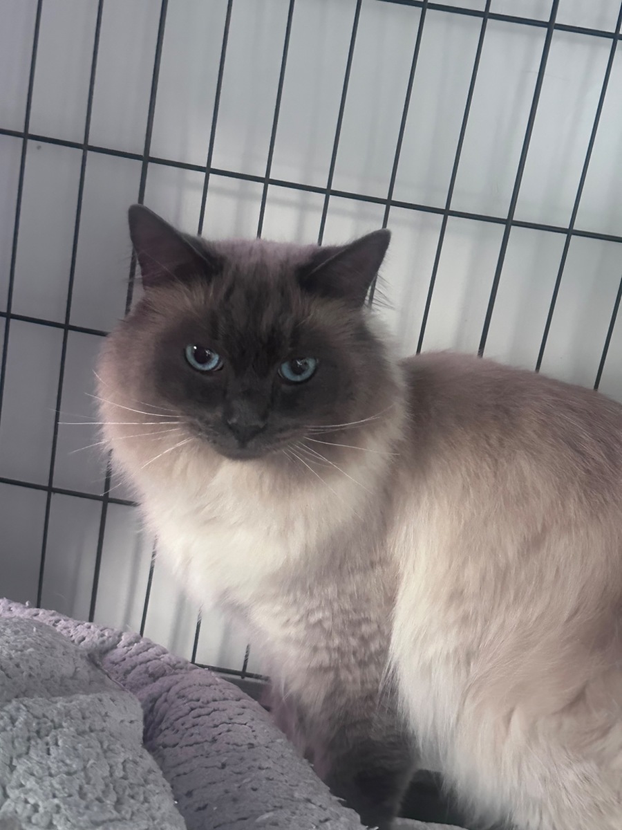 Pizza rolls is a beautiful 5yo desexed blue point ragdoll.
