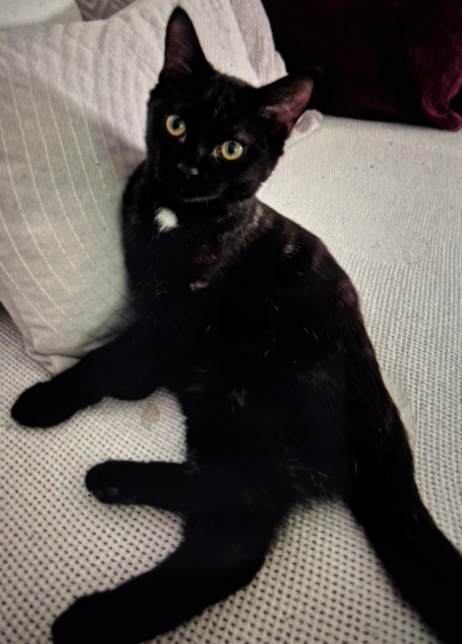appeared like a little shadow at the edge of the couch, settling quietly at someone’s feet or curling