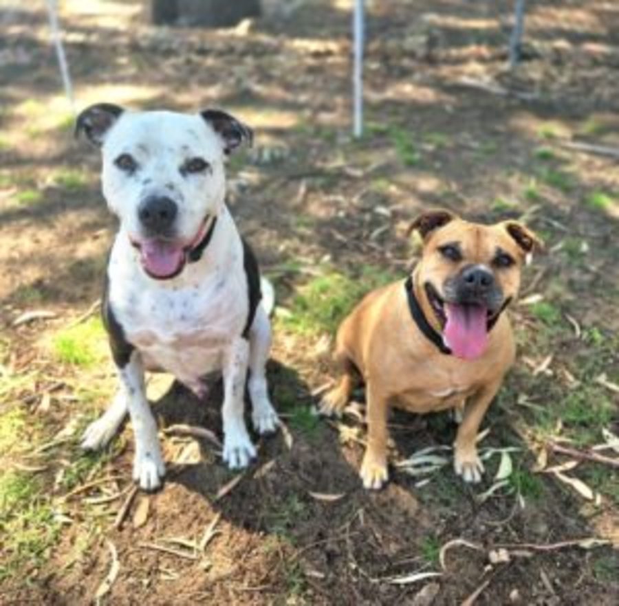 Diesel is a 9-year-old American Staffy with a big heart and a lot of love to give. He’s the more energetic of the pair and enjoys getting out for a daily walk and sniffing everything along the way. Diesel is incredibly affectionate and loves attention from his people — he’ll happily lean into you for pats or nudge his way into your lap for some extra love. While he can be a little anxious at times, having Billa by his side helps him feel safe and settled.