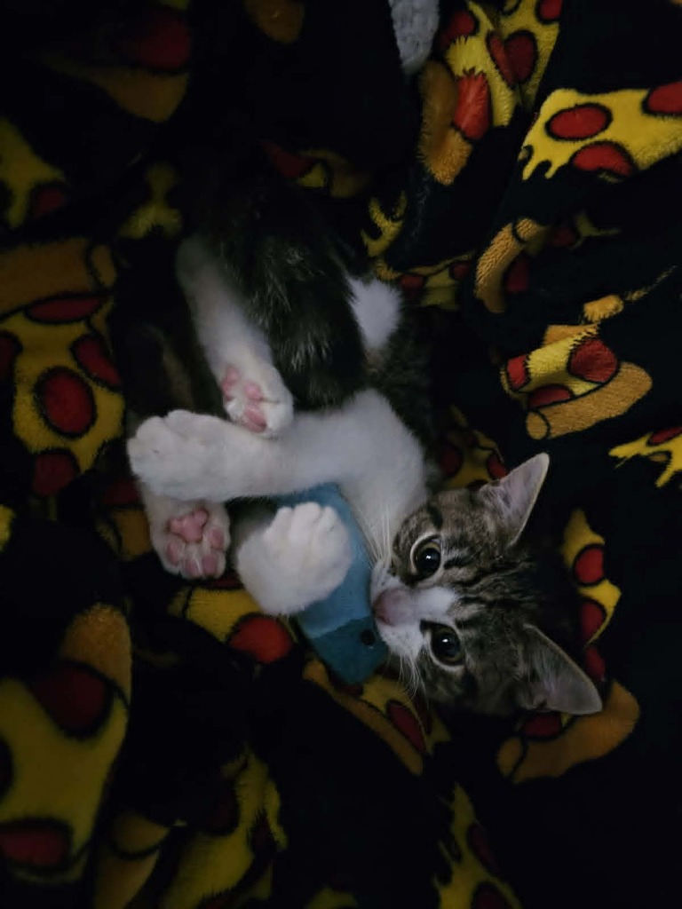 He loves company, loves a cuddle, and has that calm, sweet energy that makes kittens like him so easy to fall in love with. Whether he’s snuggling into a warm lap, quietly exploring the house, or playing with his kitten friends, Jazzy brings a soft, steady joy to every moment.