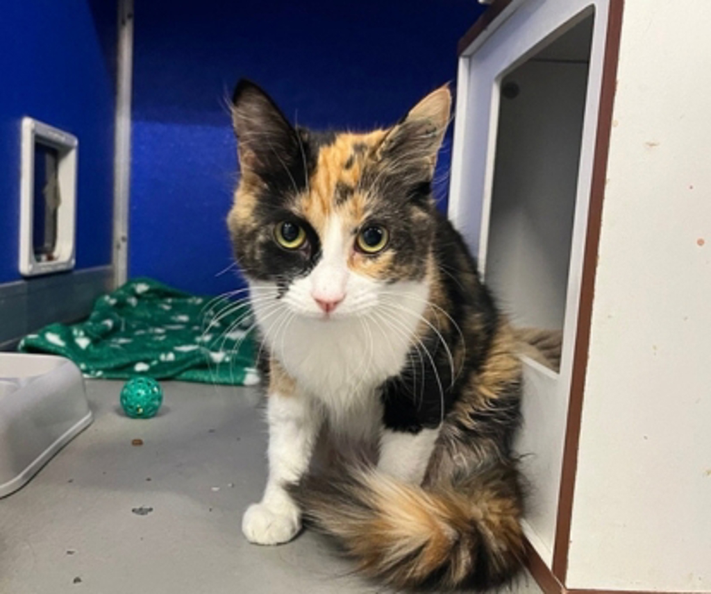 This girl prefers to take things at her own pace. New environments can make her a little nervous at first, so she'll likely find a cozy hiding spot while she settles in. But once she feels safe and comfortable, Concetta will blossom. She'll come out to seek gentle pats and will be a delightfully soft, quiet companion for her new family.