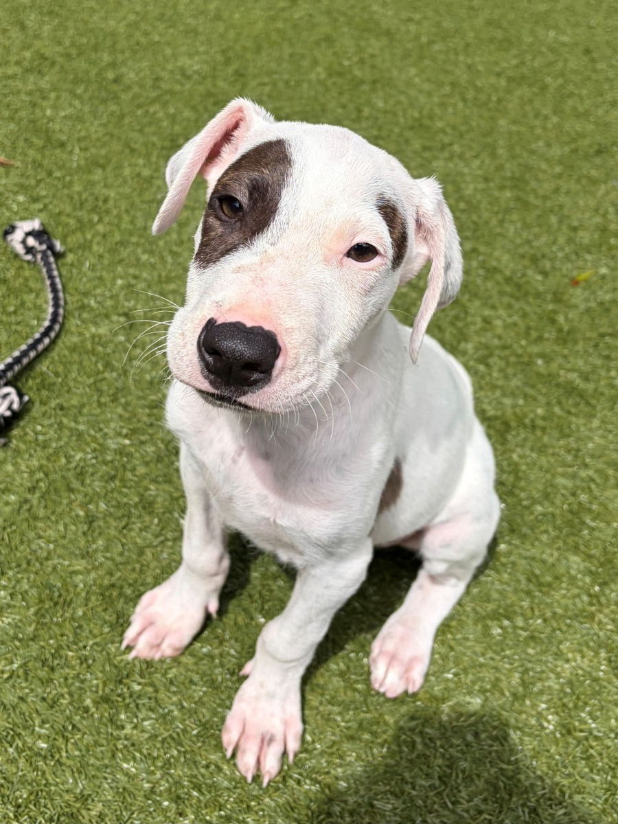 Their coat is predominantly white or cream with patches, and they may also have liver or black patches.