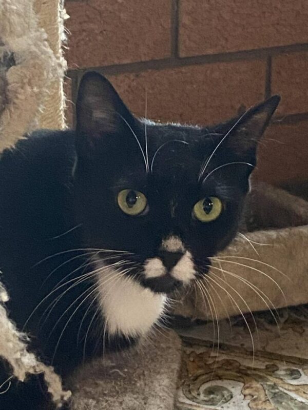 Elegant in her black‑and‑white coat, Sarabi has raised her kittens and is now ready to find a home of her own.