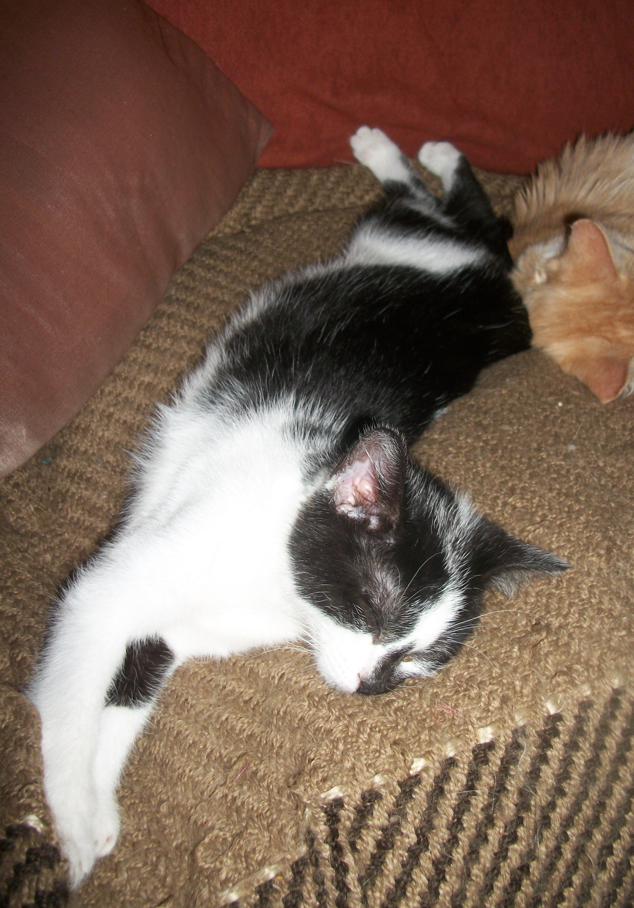 My favourite thing to do when i’m home alone is snooze on the couch and investigate new things, but when my foster family is around i love to talk to you and get cuddles. I’m unique because i am half black half white and have the most amazing markings. Before i came to little paws, my mum had kittens and my family didn’t want me so i was surrendered to my new foster mum. I love other cats, and i tolerate dogs. I would not like being in a home with children. My perfect forever family would be very loving and quiet home where i can settle in calmly