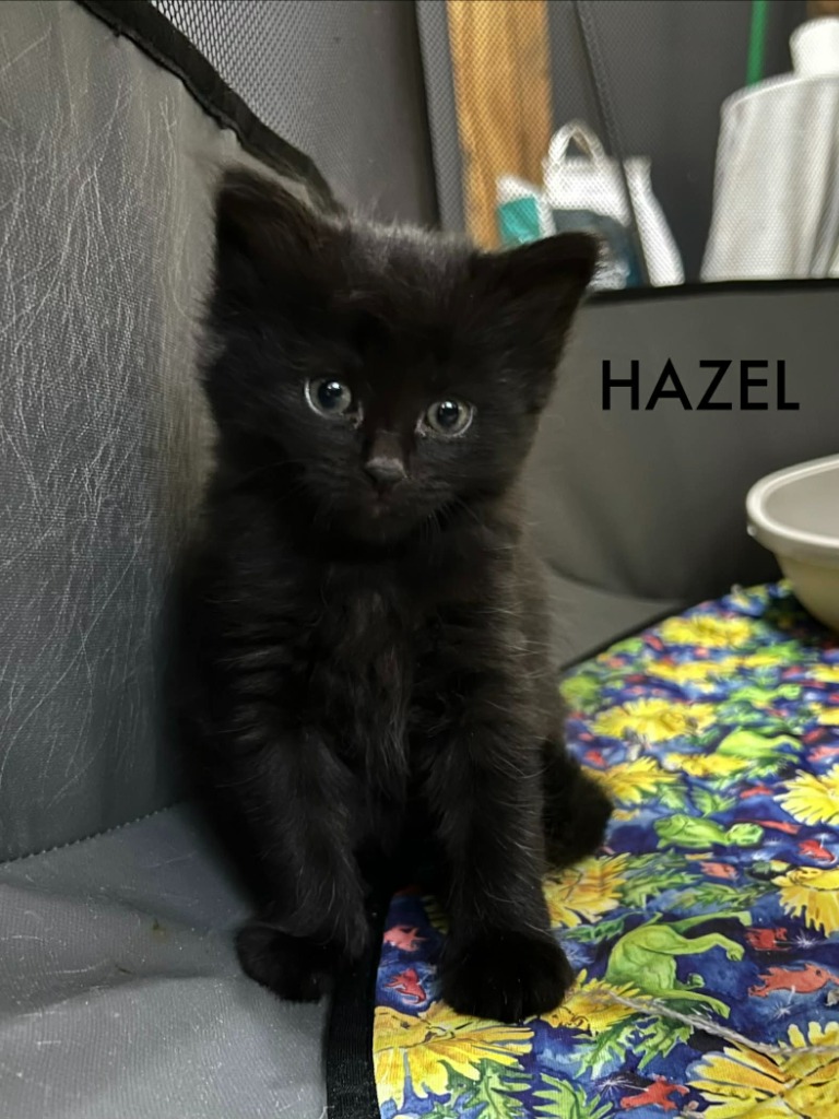 Hazel is pure joy wrapped up in a kitten. A curious little explorer with a goofy streak, she’s always on the move — chasing, climbing, investigating… and occasionally pausing dramatically when snacks are involved (her true love language 😄).