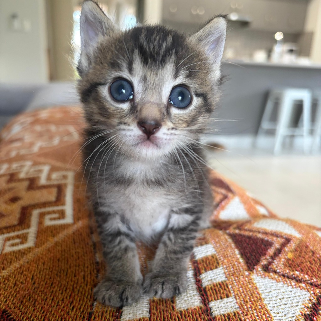 Meeko may be the smallest of his three brothers, but he makes up for it with the biggest heart. This little cuddle monster is the sweetest, most affectionate boy who absolutely adores human attention. If you’re looking for a kitten who always wants to be close, Meeko is your boy.